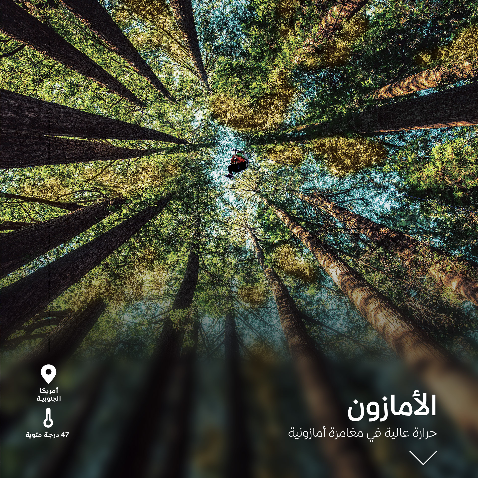 إن لم تكونوا مهتمين بالرحلة الخريفية، يمكنكم أن تصيّفوا في الغابات المطيرة وتستمتعوا بجمال الخريف في آنٍ واحد. انطلقوا معنا في الرحلة الأكثر إثارة في حياتكم وودّعوا المظلّات التي كانت تصنعها أوراق الأشجار في الغابات في الماضي، حيث ستنطلق بكم هذه المغامرة الأمازونية إلى المستقبل الحارق للمناطق الاستوائية.