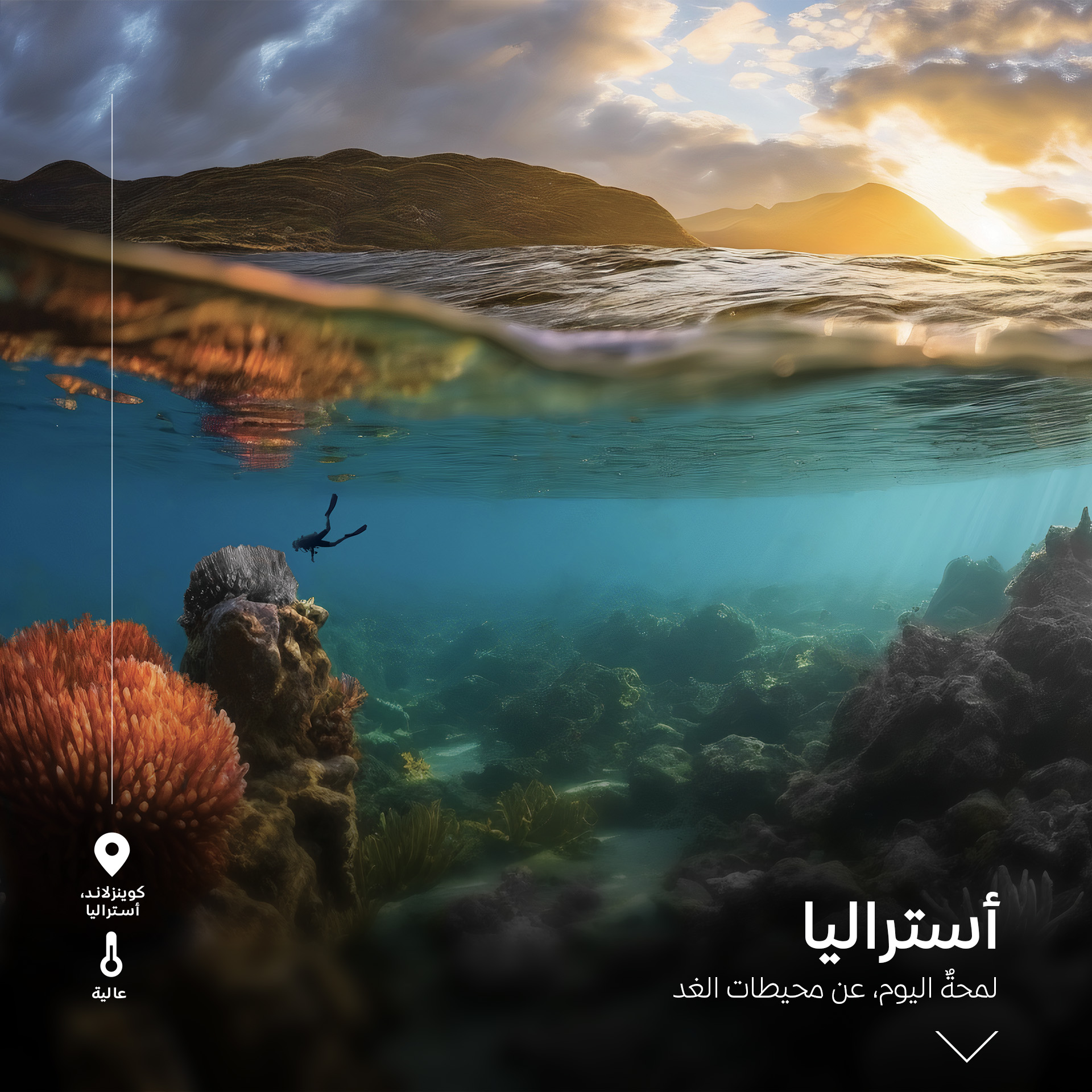 لنلق نظرة على المستقبل في أستراليا من خلال رحلة إلى الشعاب المرجانية المبيضة في الحيد المرجاني العظيم. مرحبًا بكم في مستقبل المغامرة تحت الماء، حيث تلتقي ألوان الحياة النابضة بالحياة مع الواقع المرير للتغيير. تقدم الشعاب المرجانية في أستراليا، التي كانت مفعمة بالحياة، نوعًا مختلفًا من الجمال المتمثّل في مشهد شبحي آخر تحت الأمواج مباشرة.