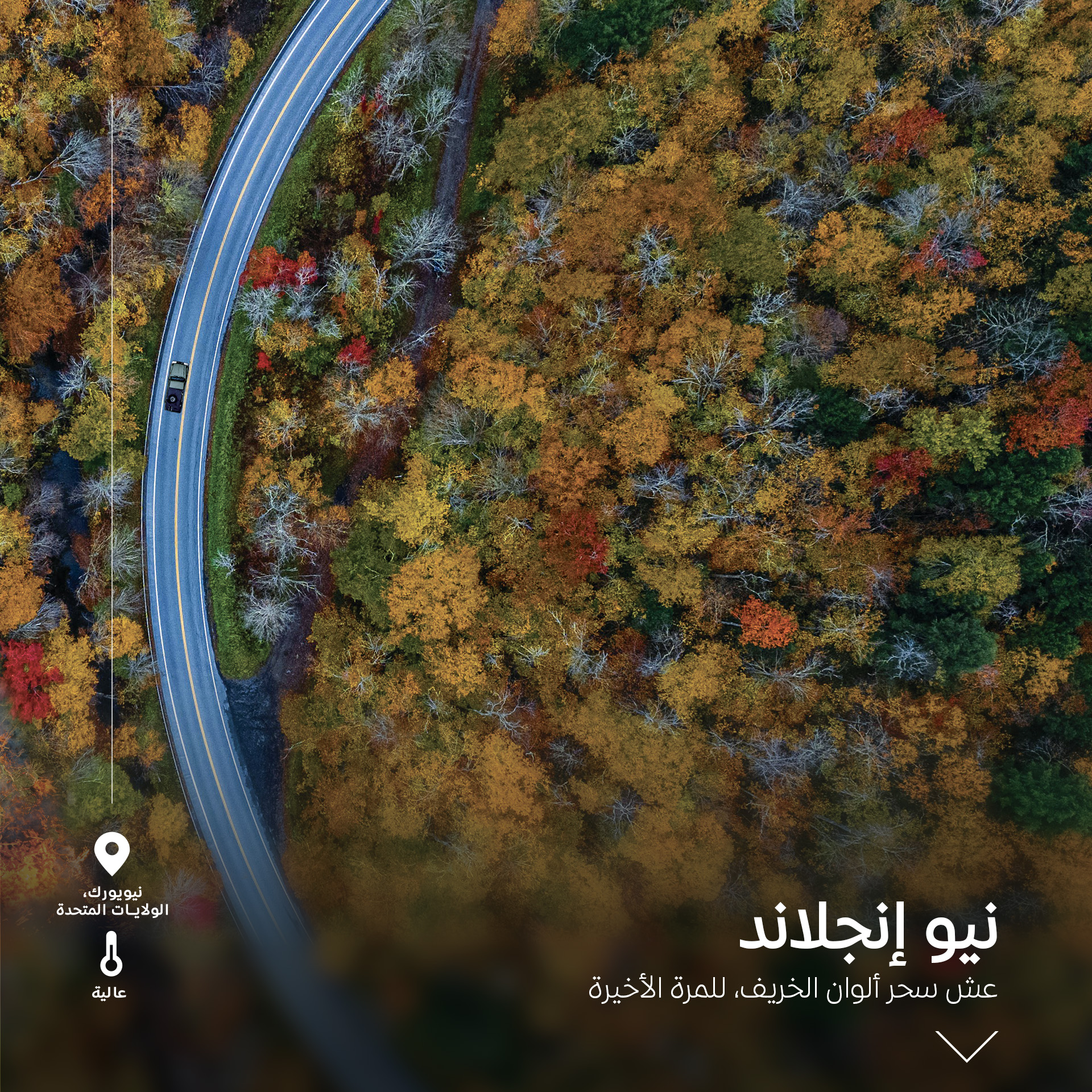 تتحول نيو إنجلاند مع رحيل الصيف إلى لوحة فنية رُسمت بألوان الخريف الدافئة، حيث يُرافقك في رحلتك البرية الكلاسيكية مشهد أوراق الشجر المتساقطة، والذي يبدأ بسحر الطرق الريفية في فيرمونت وينتهي بالهدوء الساحلي لولاية ميْن، وهي الرحلة المرتبطة بعمر الأشجار.