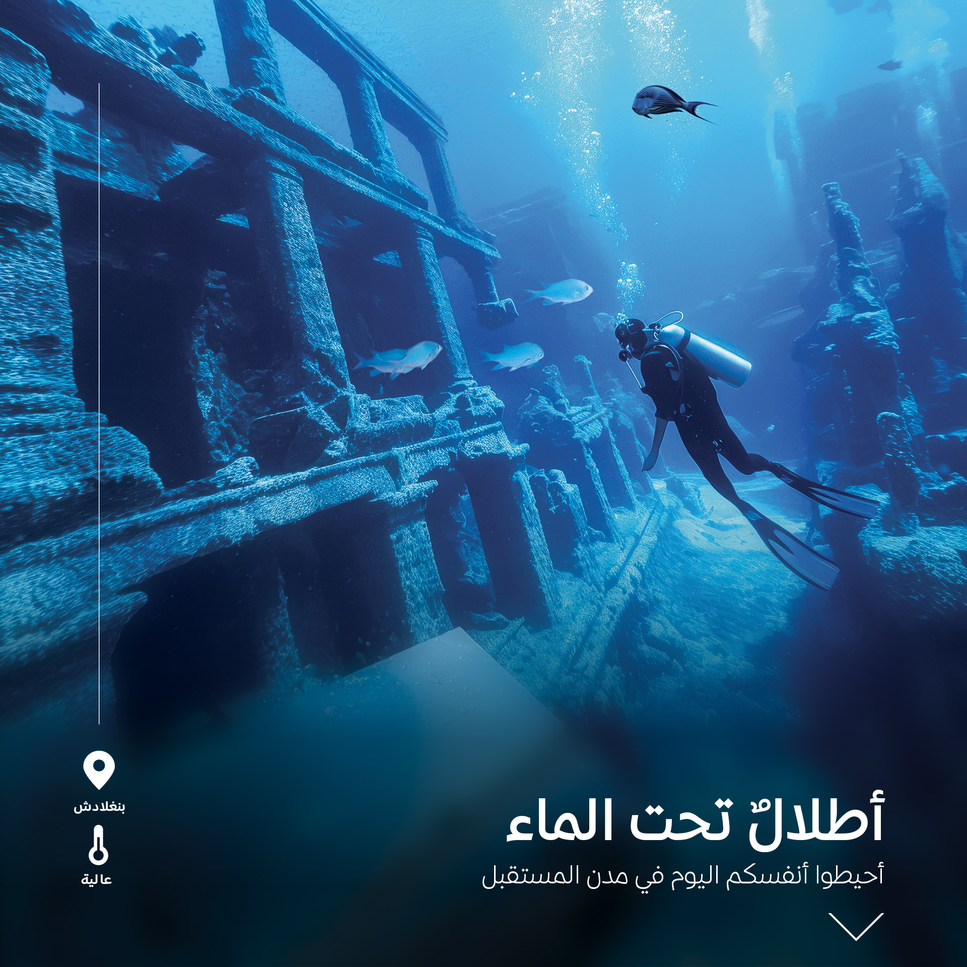 للمصورين تحت الماء الواعدين! هل تشعرون بالحساسية تجاه مياه البحر؟ إذًا ما عليكم إلّا اختيار الرحلة التي نتوقف من خلالها في بنغلاديش، لتحصلوا على فرصة الغوص في مياه الأنهار في غابات القرم والشوارع الغارقة في مدينة دكا، حيث تم استبدال صخب المدينة بصمت الأعماق، ومع اشتداد الرياح الموسمية وأنهار المياه الجليدية من الجبال، أصبحت الفيضانات الشديدة التي تضرب الدولة الثامنة عالميًا من ناحية الاكتظاظ بالسكان، أكثر شيوعًا. وعليه، فلننطلق في رحلة إلى البلاد التي كانت تقع في أكبر دلتا نهرية في العالم، عند ملتقى نهري الغانج وجمنا وميغنا، قبل أن تصبح الآن وجهة مثالية لمحبي العمارة المزخرفة حيث أصبحت اليوم موطنًا آمنًا للأسماك.